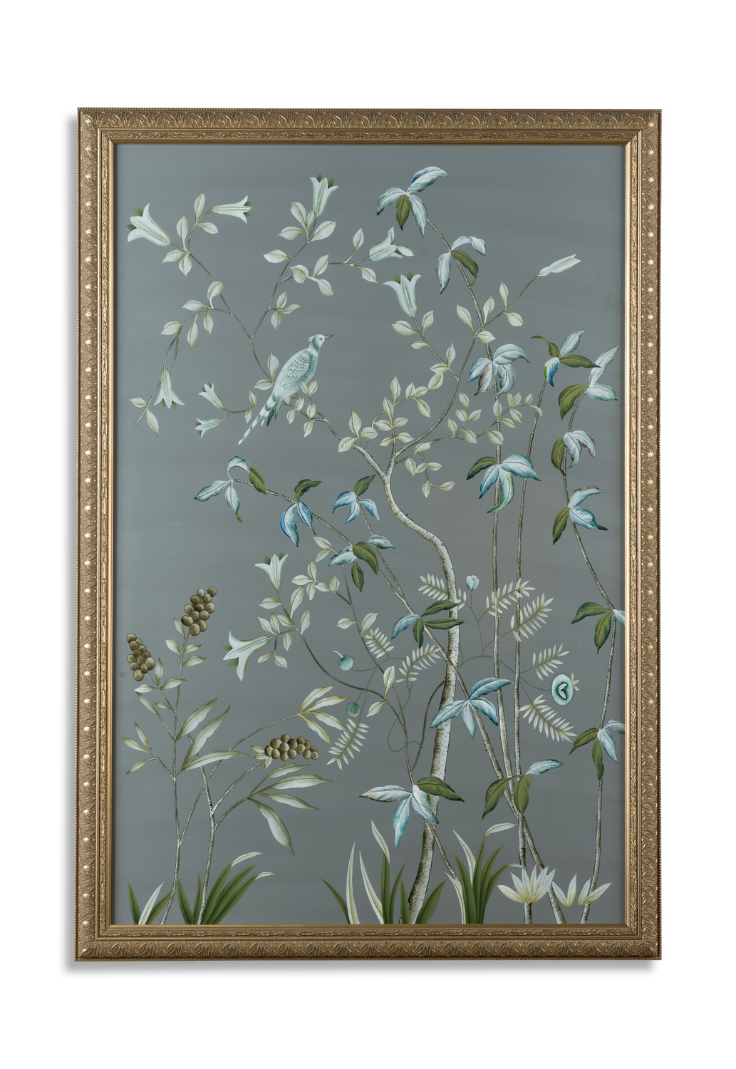 Introducing the Buckhead Panel Pheasant Framed Art by Gabberts - a masterpiece that exudes elegance and sophistication. This exquisite piece features a hand-painted watercolor on silk, showcasing a stunning scene of a majestic pheasant perched gracefully on a delicate branch. The antique gold frame with glass adds a touch of opulence and charm to the artwork, making it a true statement piece for any space. Crafted with precision and attention to detail, this framed art exudes a traditional style with a modern twist, making it a versatile addition to your home décor.