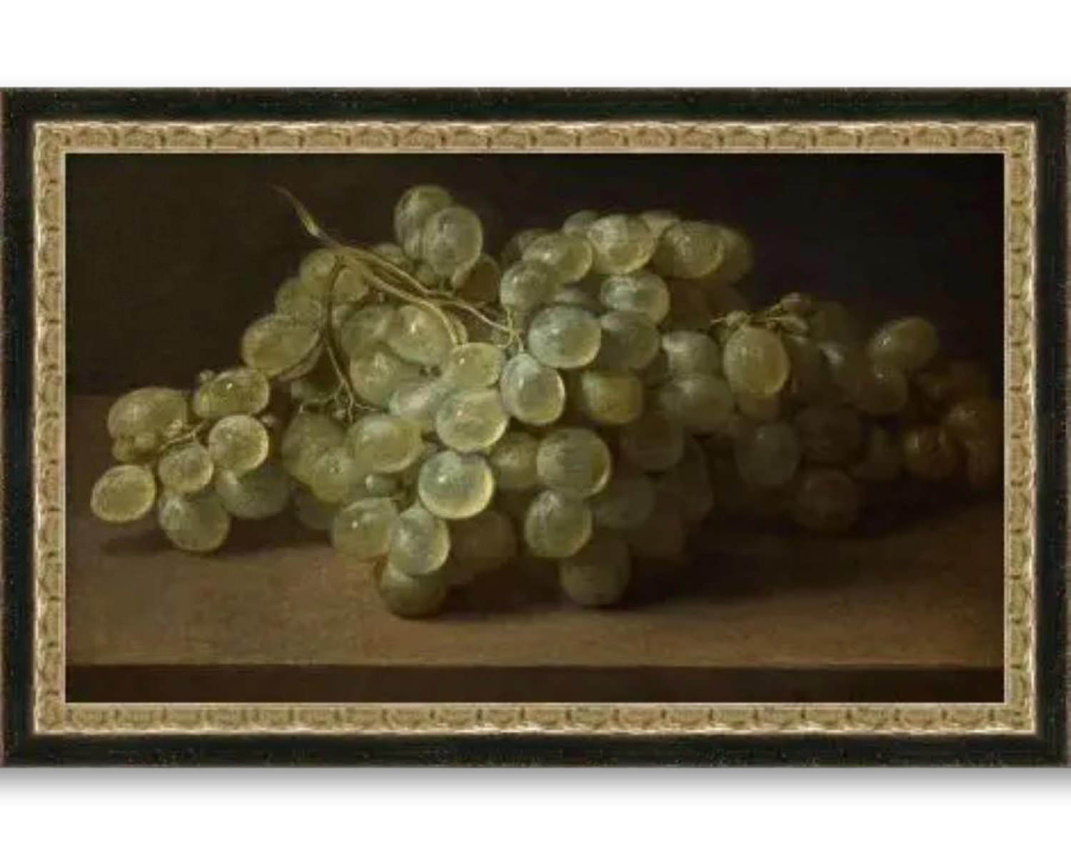 Indulge in the exquisite charm of the Ripened In Light framed art piece by Gabberts. This decorative still life showcases a luscious cluster of green grapes set against a backdrop of elegance. The hand-applied crackle finish adds a touch of sophistication, enhancing the traditional style of this giclee on canvas masterpiece. Mounted to hardboard for durability, this framed art product in black exudes luxury and refinement. Elevate your space with the timeless allure of Ripened In Light, a true statement piece for those with a discerning eye for beauty and quality.