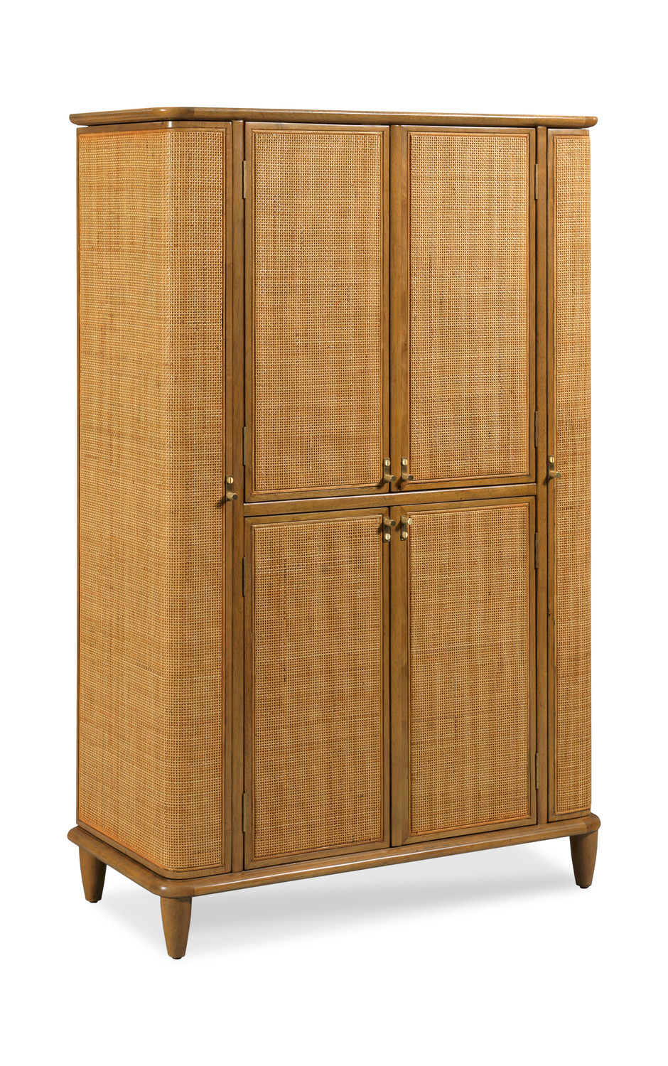 Enhance your home entertaining experience with the elegant Kapalua Bar Cabinet from Woodbridge. Crafted from solid hardwood and veneers, this stunning piece features a beautiful Hazelnut finish that exudes warmth and sophistication. Measuring 42 inches wide, 19 inches deep, and 67 inches high, this bar cabinet offers ample storage for wine bottles and glassware. The marble shelf and center drawer provide a luxurious touch, while the center doors open to reveal a mirrored back, adding a touch of glamour to your space. Available only as shown.