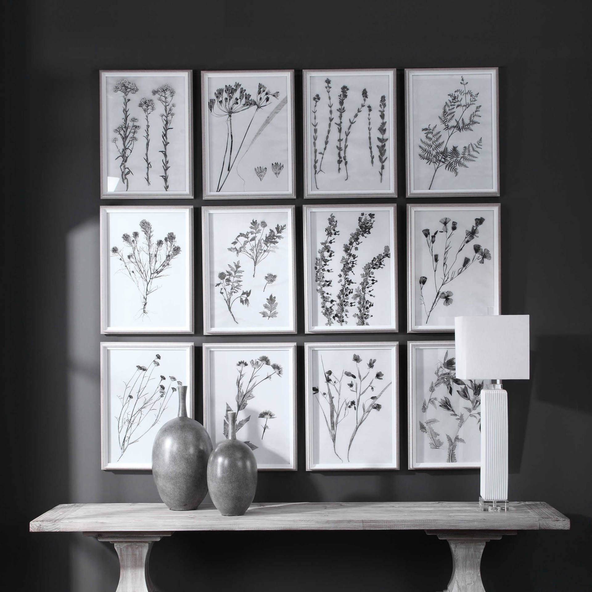Consider mixing in planters or different-shaped framed pieces, circular mixed with rectangular to give the illusion of depth and interest.