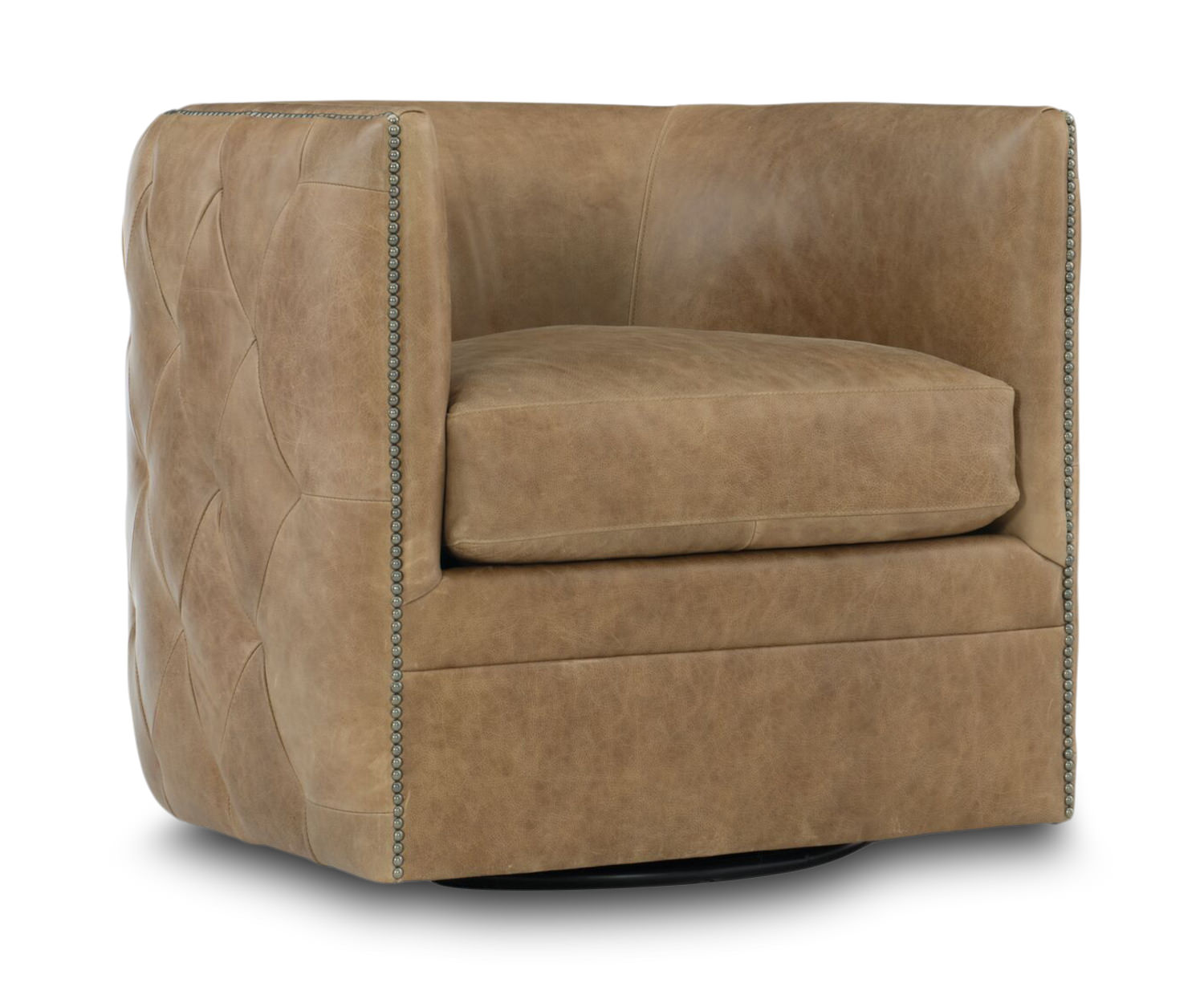 The Palazzo Swivel Chair is chic and stunning. It offers extraordinary comfort that will surprise your guests. This tufted leather transitional chair will compliment a variety of design styles.