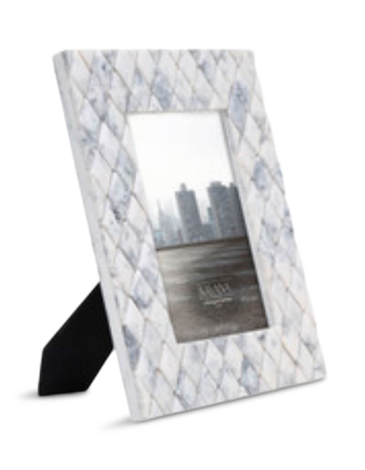 Introducing the exquisite Tumira Frame 5" X 7" from Gabberts, where luxury meets sophistication. This unique frame features a distinctive diamond-patterned face, creating visual interest and depth that is sure to elevate any space. The harmonious blend of gray and white marble-like texture exudes elegance and charm, making it the perfect addition to both modern and traditional décor styles. Versatile in design, the Tumira Frame is suitable for both tabletop placement and wall mounting, allowing you to showcase your most cherished memories in style. With Gabberts branding, you can trust that this frame is of the highest quality and craftsmanship.