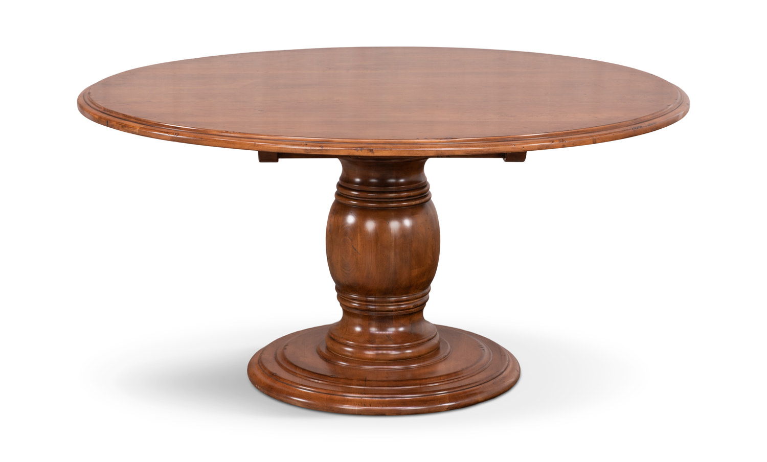 Experience timeless elegance and exceptional craftsmanship with the Vinyard II Dining Table from Zimmerman. This exquisite piece features a round shape and a pedestal base, creating a sophisticated and inviting atmosphere in your dining space. Crafted from solid cherry hardwood in the USA, this table boasts a beautiful finish that adds a touch of sophistication to any room.