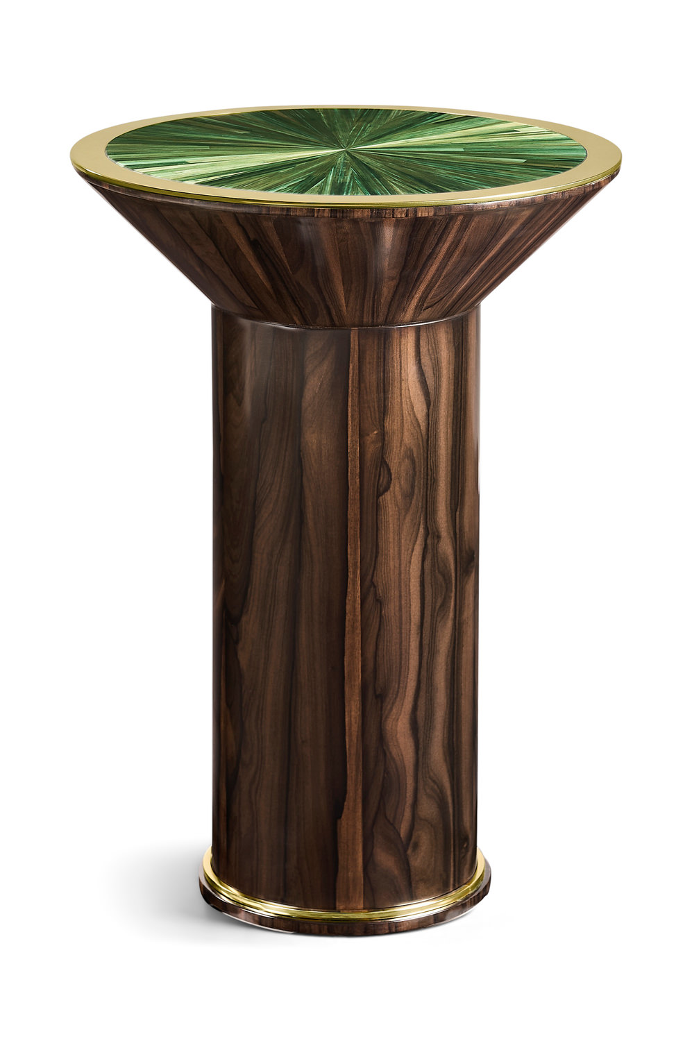 view storesDiscover the timeless elegance and meticulous craftsmanship of the Verdure Round Side Table by Jonathan Charles. This exquisite end table features a stunning jade straw marquetry top, complemented by a sturdy construction of hardwood solids and veneers. The solid brass hardware adds a touch of luxury to this transitional style piece, perfect for adding a pop of green color to your living space. Available only as shown.
