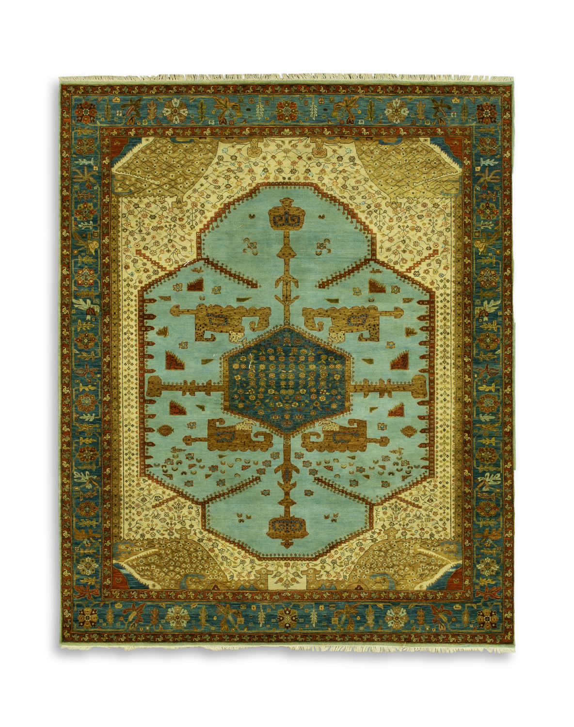 view storesThis beautiful one-of-a-kind rug was hand-selected by our rug buyers in India. It is hand-knotted and made of 100% premium wool and will add color and warmth to any room. Choose this hand-knotted rug to complement your home furniture and décor. This black area rug features white/off-white fringe on both sides. This rug is only available at the specified showroom listed.