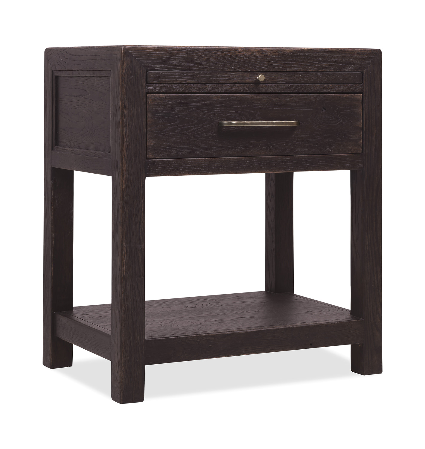Immerse yourself in luxury with the Driftwood One Drawer Nightstand from the renowned Hooker Furniture Brand. This exquisite nightstand from the Driftwood Collection features a sophisticated dark finish that adds a touch of elegance to any bedroom decor. Crafted from high-quality oak solids and veneers, this nightstand boasts durability and timeless beauty.