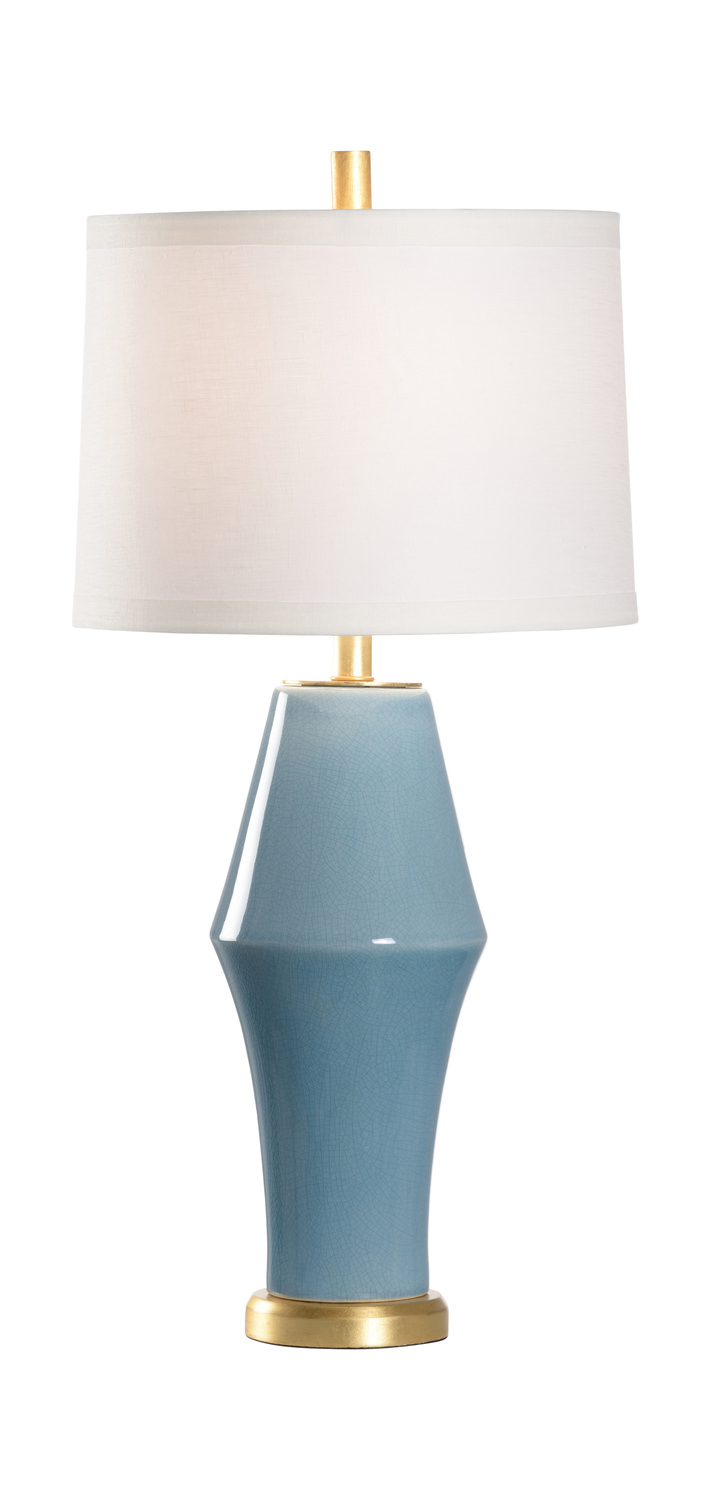Introducing the St. Michael Table Lamp from Gabberts, a true embodiment of luxury and elegance. This exquisite lamp features a stunning blue crackle glazed ceramic base, perfectly accented with touches of antique gold leaf for a touch of opulence. The classic silk white drum shade complements the clean silhouette of the lamp, creating a timeless and sophisticated look that will elevate any space. Illuminate your home with style and grace with the St. Michael Table Lamp from Gabberts.